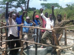 It all began about 3+ years ago when faculty colleagues from the Communication Studies and Anthropology Departments approached me and posed this question: How would you like to go to Africa? Well, actually I had really never considered it. The extent of my prior travels abroad consisted of Canada and Mexico to popular vacation spots, and if I were to travel abroad, I would have told you I wanted to go to Europe or the British Isles. Well, as you can imagine, I must have changed my mind or you wouldn’t be reading this blog. Back to the story…My colleagues had been approached by a non-profit organization called Busoga Trust America, who partners with rural Ugandans to develop safe water sources, implement sanitation systems, and provide health and hygiene education, for help in assessing the impact of their program on the lives of the people of the Masindi Region of Uganda. My role would be to investigate the impact on health outcomes. Our initial attempts for grant funding through our university failed but in the summer of 2008, after a new colleague joined our efforts, the Director of Global Education, we submitted a proposal to the Philadelphia Global Water Initiative (PGWI). PGWI works with Rotary International to help them find viable projects to fund. Our project was approved and posted by Rotary for funding by a local community but as you recall, that was when the economy tanked and our project was never “picked up”. I’ll stop here for now… to be continued…. Oh, by the way, the blog banner across the top of the screen is a home in the Masindi region of Uganda, taken last summer by a colleague.  The picture of the men celebrating the new well is an example of BTA at work in Masindi.