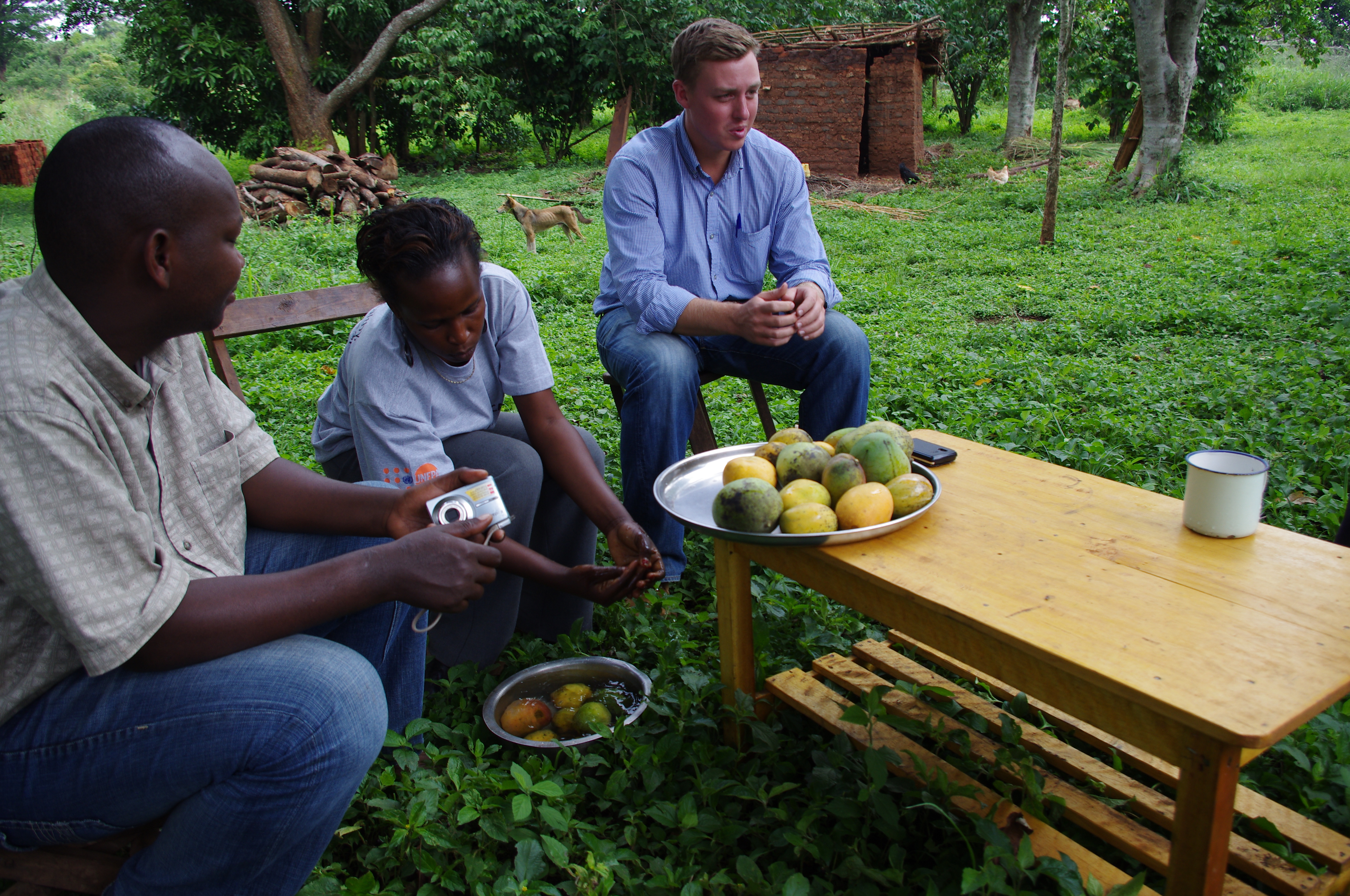 While in Africa I had the most delicious mangos! My first full day in Masindi we went to the villages where we were going to be doing the interviews to discuss the project and procedure with the Village Leader. It took about 45 minutes over very bumpy dirt roads to get to the first village and then another 15-20 minutes further to get to the second village. All of these talks went great, but by the end it was well after lunchtime and I was kind of hungry. Just then, though, the leader had a tray of mangos brought to us fresh from the tree. I have had mango before cut up in a fruit salad and I enjoy the flavor as part of a fruit drink or frozen ice, but I have never peeled and eaten a whole mango. Well, I not only ate one but probably ate about 3 mangos that afternoon. I made a sticky, juicy mess and got it all over my skirt and face but it sure was delicious. The picture here shows the tray of mangos along with some of the Busoga Trust staff.