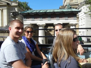 Just a quick post before I go to breakfast and head to Mulago Hospital for the day- London was great! We had the 11 hour layover so one of the students did some research prior to the trip and found a 2 & 1/2 hour bus tour we could take. It turned out to be the perfect thing. Since we all had a bunch of carry on luggage, it was nice to get a good survey of London from the top of a double-decker bus without having to be weighed down by our backpacks. The city was full of excitement as the paraolympics were still going on. We didn’t go to any of the venues but there were people talking about it and it was interesting to see some of the special artwork around the city in honor of the paraolympians. We did take time for a great lunch at a traditional pub- fish and chips all around. Here are 2 pictures- one of the students on the bus and the other of Big Ben. As you can see, it was a lovely day with beautiful weather!
