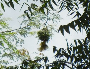 Besides the Rhinos, the area was filled with many birds. The Weaver Bird in the pictures below makes these really interesting round nests that hang from the trees.