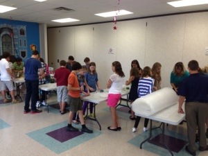 Last year when I visited the Reverend Mother at the Masindi Kitara Diocese of The Church of Uganda to deliver quilts that my friend, Janel’s quilt group had made, I asked her what I could gather and bring to her on my next trip to Africa. She mentioned that reading glasses would be very helpful for the older women and men who were having difficulty reading their bibles as their eyesight worsened with age. Boy that hit a chord with me as I have needed reading glasses myself for several years now and don’t know what I would do without them. So, I lifted up this need to the Christian Education director at my church, St. Luke Lutheran Church in Bloomsburg, PA and she jumped at the chance for the youth to get involved in this project. A call went out to the entire congregation and they gathered some 250 pairs and my Mother’s church in Florida sent up some more for a total of 275! Then last Sunday, the church Sunday school middle school and high school youth created bubble wrap eyeglass cases using brightly colored duct tape. We figured this would not only serve as good packing material but also could be used to safely store the glasses.