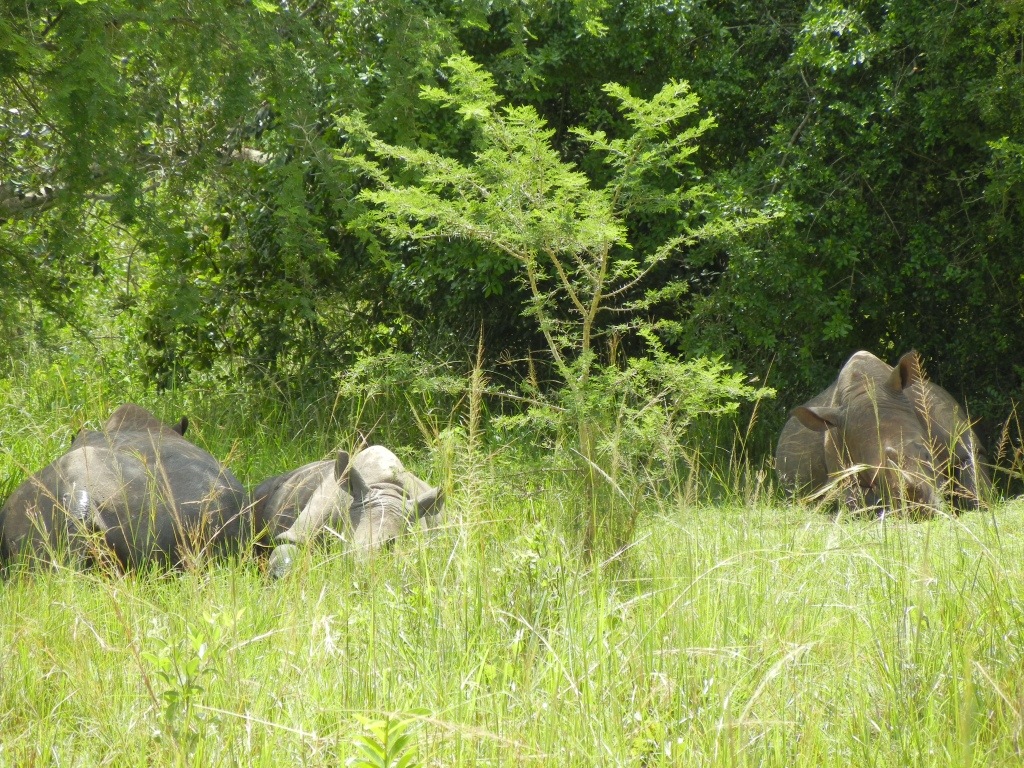 Today we went on an adventure to trek into the wilds to see White Rhinos, at Ziwa Rhino Sanctuary. Actually, today the trekking was quite easy since the rhinos had decided to rest in the shade pretty close to the safari trail. And we really did see Obama- he is the first rhino born in captivity at the center and so named because his mother is from the USA (a gift from Disney in Florida) and his father is from Kenya. The picture below is Obama.
