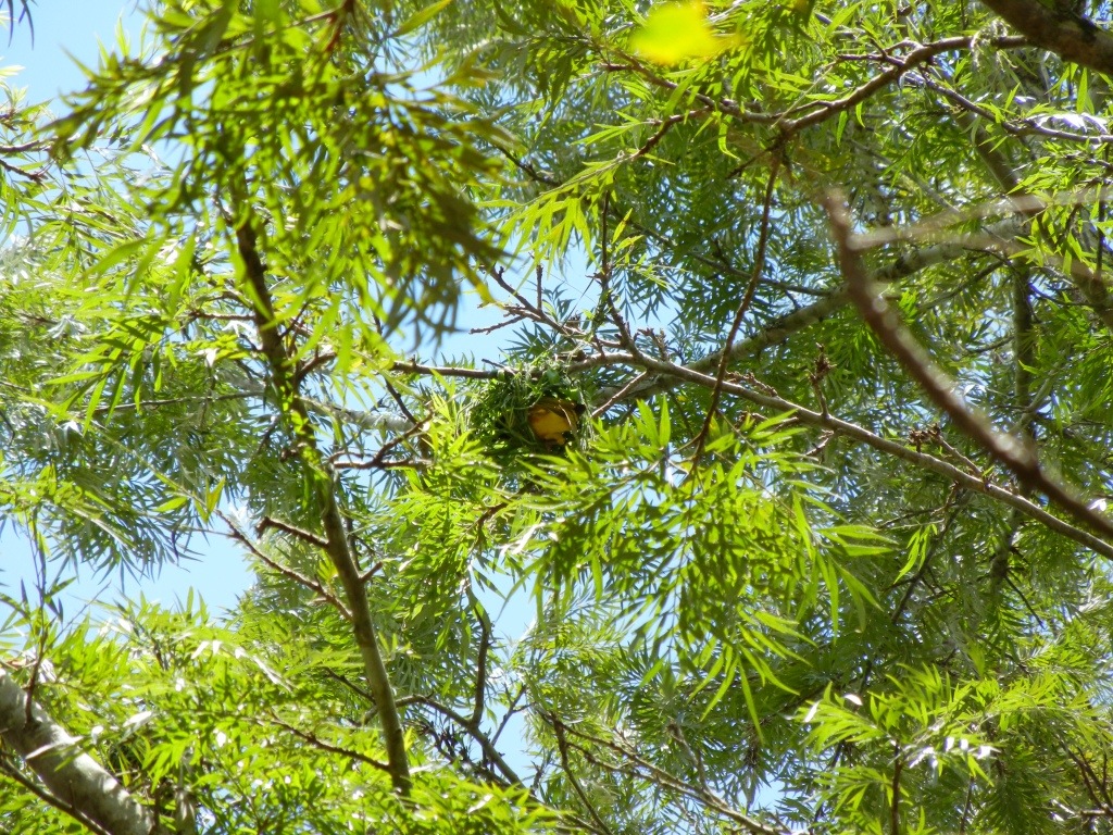 When we were at the Ziwa Rhino Sanctuary on Saturday we a really interesting bird. It is bright yellow and called a “Weaver Bird”. It weaves these really neat round nests that hang down from the tree branches. The birds enter them from the bottom. In the past, I’ve never been able to get a decent picture. You have to have a good zoom lens to capture birds, but this time, despite my inadequate zoom, I was able to get a picture that is good enough to demonstrate these interesting creatures. 2nd picture show the yellow bird’s bottom as it burrows up into the nest from the bottom. I hope you can get the gist of the 3rd picture which is showing you how there are numerous nests in one tree.