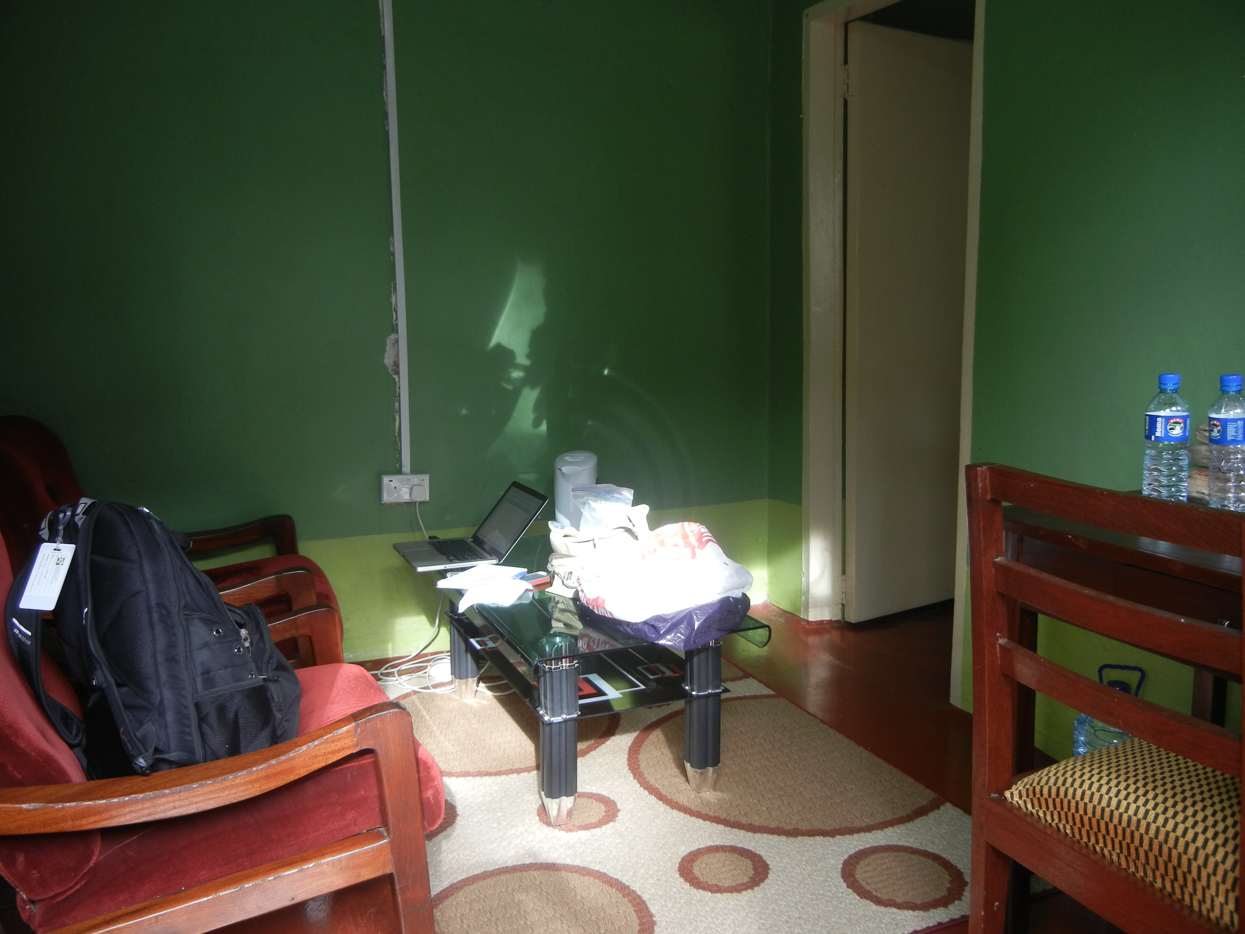 A minor nuisance that we’ve been dealing with yesterday and today is lack of electricity on campus. The pharmacy school has been affected the most. I seem to be able to have power off and on at the Edge House, where I am staying on campus, so at least I start the day with charged electronics. I do hope, though, that tomorrow the transformer is fixed for good and there are no more difficulties. I’m lucky that I have a new computer with a good battery so at least I can work for a few hours until it is drained. So, in the afternoon when I couldn’t work more, I came back and relaxed a bit outside until the ants got to bugging me too much. I’ve include some pictures of Edge House and the yard so you can see the nice accommodations the University has provided for me. I am quite comfortable and safe- the housing complex is surrounded by a fence and there is a worker on 24 hours to open and close the gate.