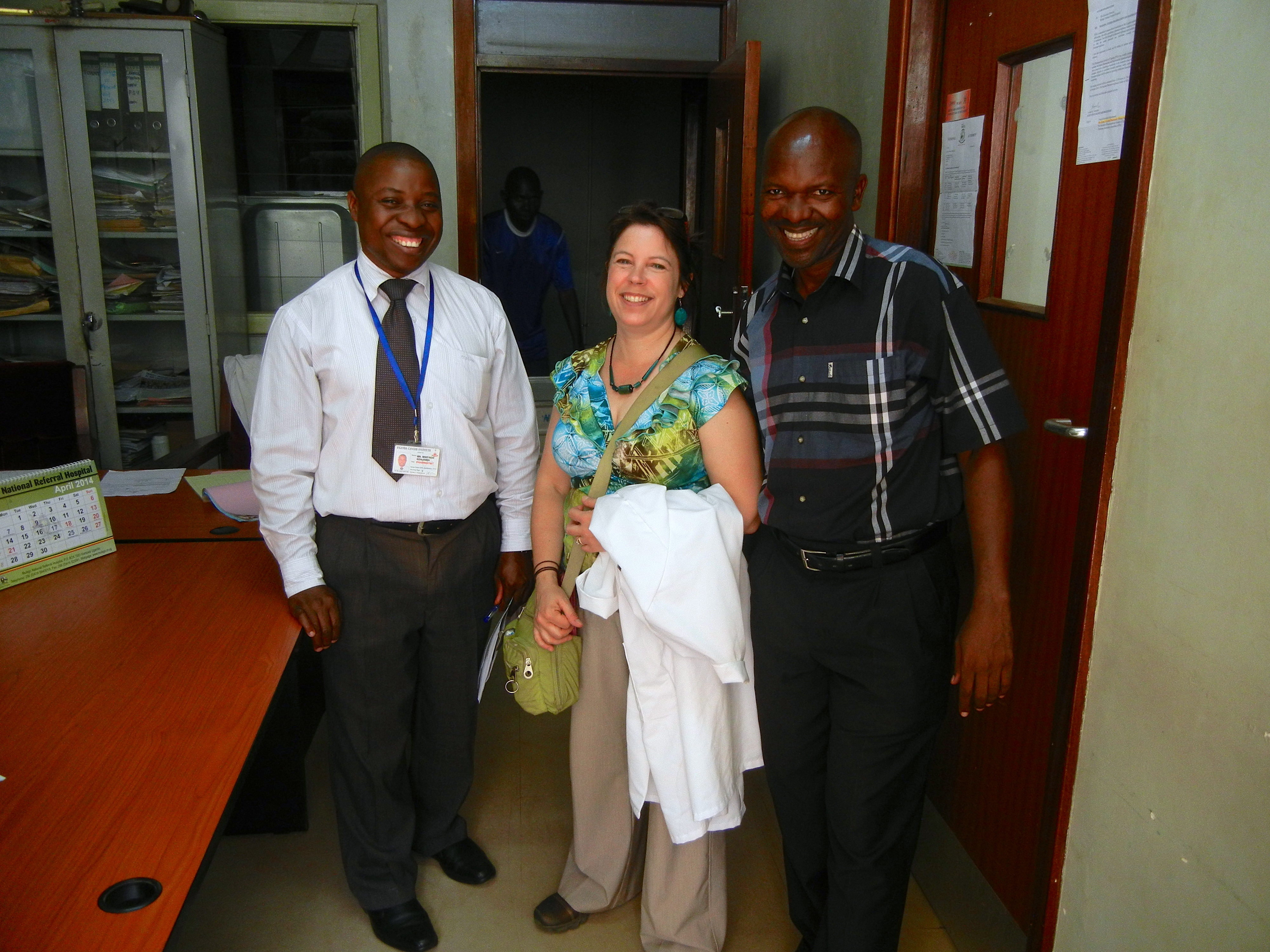 Above is a picture of Patrick, Benjamin, the head pharmacist for the Uganda Cancer Institute (UCI), and me. I have worked with Benjamin since the 2012 trip. He is very dedicated to improving the healthcare of patients at the UCI by making sure the center is procuring drugs that are efficacious and safe. Recently Benjamin was quoted in an article in the New York Times (14Feb2014), on the FRONT page, regarding the lack of quality in some of the drugs the UCI has obtained from manufactures in India. In fact, Benjamin has been such a strong advocate for safe and effective drug use that he has convinced the government to increase his funding so that he can purchase drugs from more reputable sources. He told me today that he was asked to accompany a team of investigators to India in May to look further into the issues with the production of substandard drugs and to see how the drug companies are going to improve their supplies.