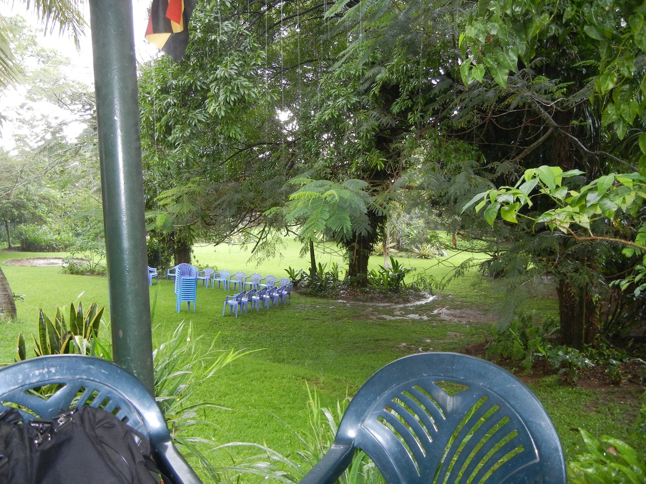 Well, fortunately just about this time, Abdul and Alicia come along and we follow them only about 100 yards to the gated entrance of one of the parishioner’s homes. We couldn’t believe we were only a stone’s throw away. The opening gate revealed a beautiful home, and can you believe it, a 3-vehicle carport – a covered area big enough to fit 3 large cars.