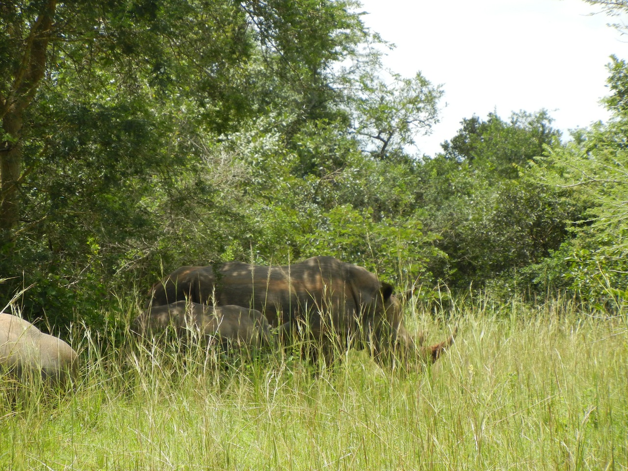 Bright and early Wednesday morning at 7am we were ready and awaiting our driver for the trip to Masindi. Sam, my trusted driver on the Masindi leg of my trips since 2011, drove to Kampala with a friend to pick us up and finally arrived at about 8am after a delay due to traffic. You have probably realized a recurring theme: traffic is a major issue in and around Kampala. Anyway, once on the road, having said goodbye to my Kampala friends, Jeff and I headed for Masindi, but first stop, Ziwa Rhino Sanctuary. White Rhinos, which are the type this sanctuary houses, used to be native to Murchison Falls and other parks in Uganda, but due to poaching they became extinct.