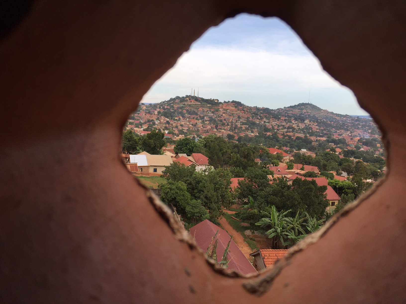 View through the clay lattice wall at the top of the building.