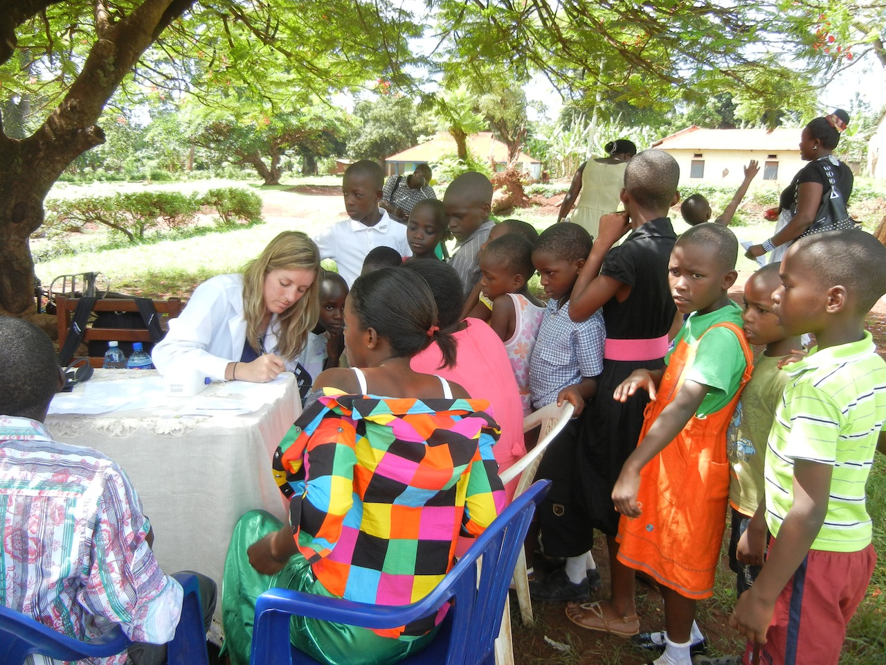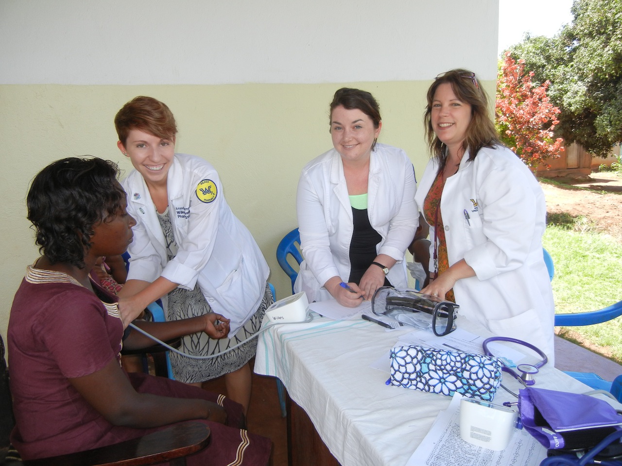 Today the Wilkes students and St. Joe’s Pharmacy Resident completed this procedure about 252 times while they screened parishioners at St. Matthew and All Saints Church in Masindi, Uganda. In fact, most people who had a high reading were tested at least one more time, to double check. We were able to identify 84 people (33%) who had high readings and 33 (13%) had extremely high readings and were referred to seek medical care as soon as possible this week. Although there are plenty of medical clinics around, some of the patients with high BP that I counseled admitted they had never had it taken before and also had not ever seen a doctor.