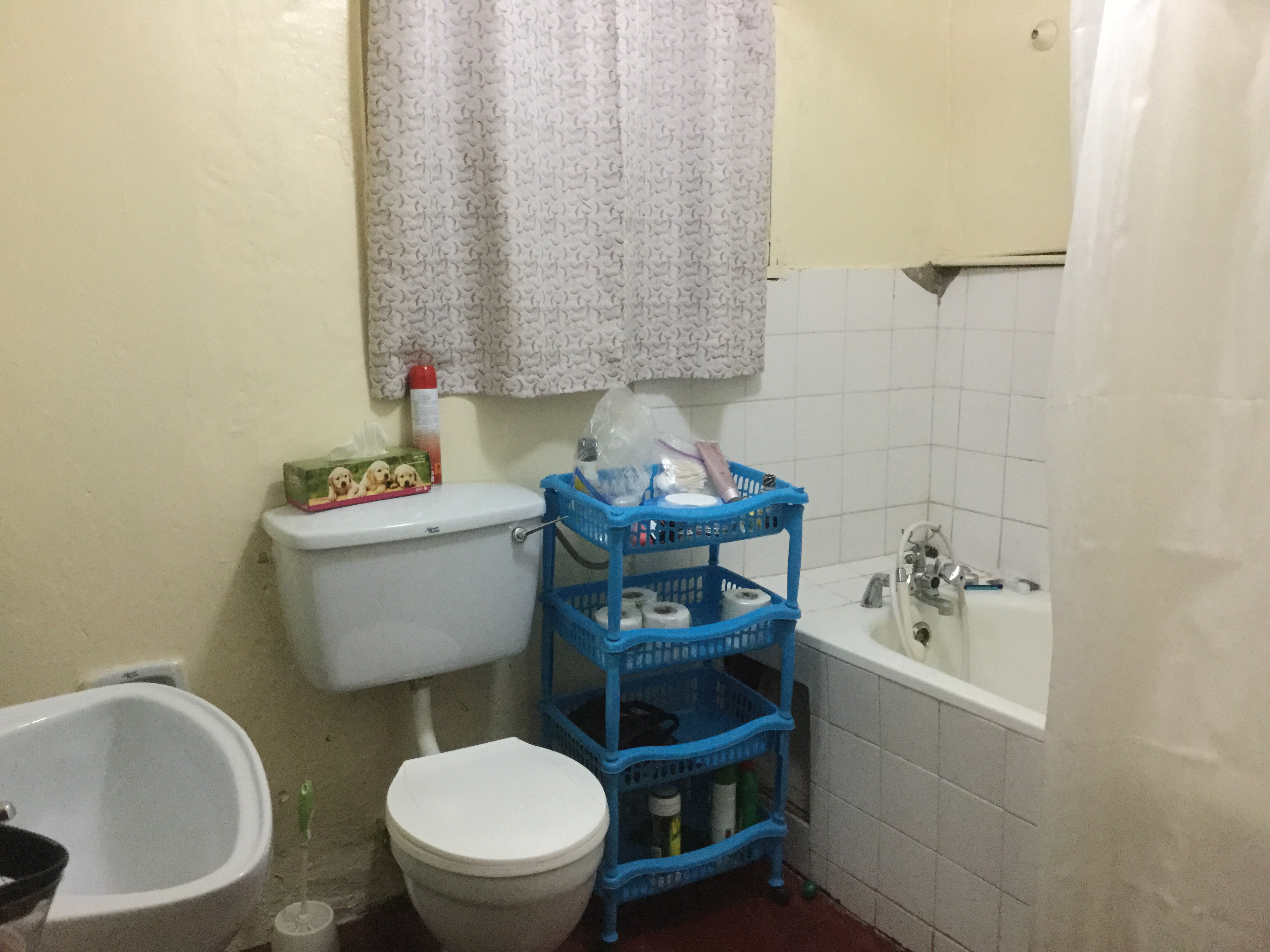 The bathroom has a modern toilet, a nice tub with handheld shower head and best of all, really great hot water!