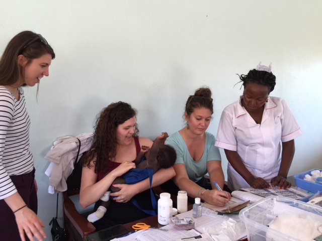 The students helped the Nurse Midwife, Brenda, record all of the data on the baby such as the weight and the vaccines given.