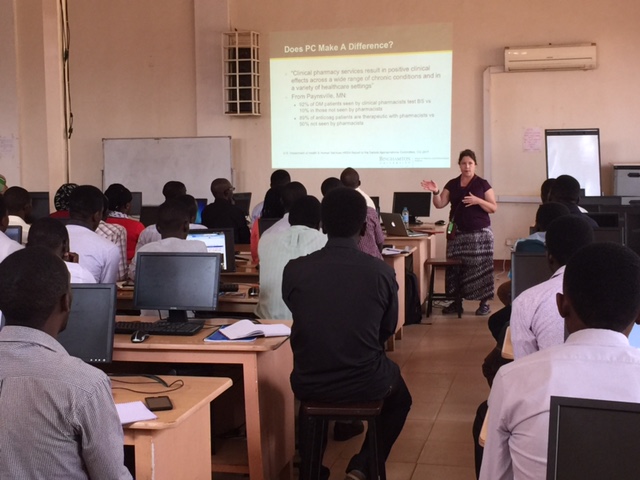 We Americans all split up and took small groups of the 4th year pharmacy students to the different wards. The students had found patients to assess ahead of time and presented them to us. We then worked together to determine the patients drug therapy problems and came up with solutions we could recommend to the Clinicians. At the end we went into a room to debrief the whole experience and this was basically like a verbal reflection of what they had learned. Each student arose and talked about what they learned from the rounds and the whole day’s event. Our time here has definitely been helpful for the MUST students as well as for our own personal growth. Tomorrow we will continue the program with more ward rounds in the morning with the 3rd year students and I will present Grand Rounds to all of the healthcare profession students here at Mbarara Regional Referral Hospital.