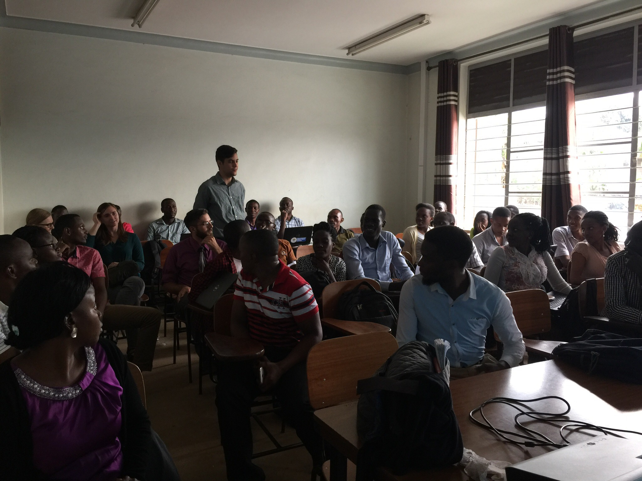 It’s been another busy day in Kampala. We went to the Pharmacy School at Makerere University for the first time to participate in the day of case presentations by the Ugandan students. The 4th years went from 9-12 then we had a delicious Ugandan meal at the Pharmacy School Canteen. Then the 3rd years went from 2-5pm. They had all gone to the hospital this week to see patients in teams and had to write up a case, research the drug therapy issues, and present it by a power point presentation to the rest of their class. Afterwards their was question and answer time with discussion. Of course I did a bit of teaching as well to help work through any of the points the students didn’t get clearly.I also got a chance to talk with the Head of the Department, Dr. Kamba, as well as my friend and first collaborator, Professor Richard Odoi. As I write this, I’m waiting at Entebbe Airport to welcome my past Department Chair at Wilkes University. After encouraging him to come with me to see the wonderful and rewarding experiences of the students here for a couple of years, he is finally joining me. It is his first trip to Africa and the students and I are really excited to have him. I will work with him and the students for one more week and then he will carry on here for the remaining week of the students’ Global Health Advanced Pharmacy Practice Experience. I have to get back to my new University, Binghamton University School of Pharmacy and Pharmaceutical Sciences. We have an accreditation visit coming up at the end of October and I need to prepare.-