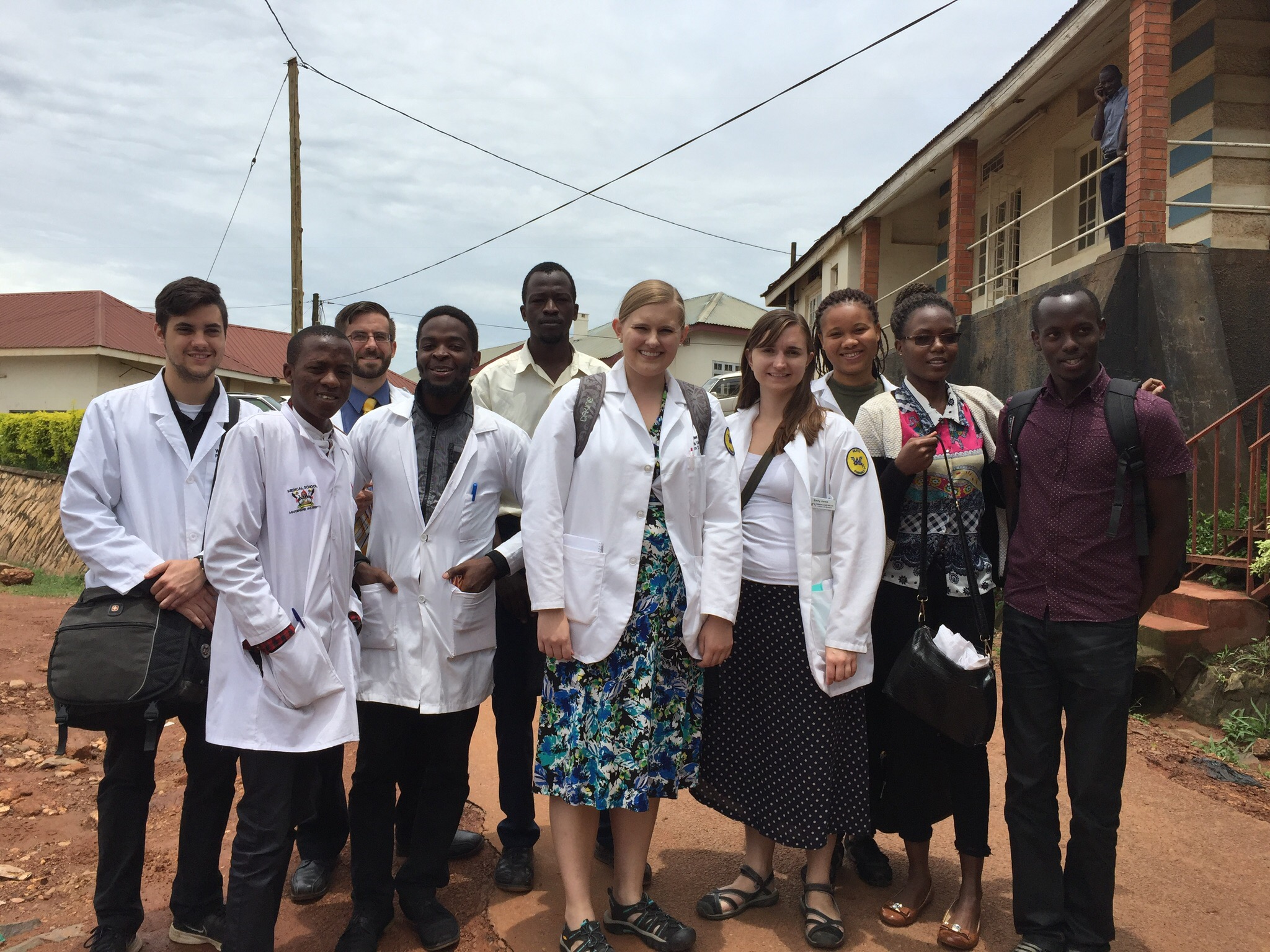 Today was exhausting but good. It started out as a really rainy day. The pouring rain started around 2am and it was a great accompaniment to sleep with the nice rhythm of the rain on the metal roofs. Plus it really cooled down so we all snuggled under the covers. But when the rain didn’t let up in the morning, it began to be a little more of a burden as we all struggled to get out of our warm, dry beds. But, we did arise and trudge to the hospital through the mud and were at the ward by 8am. But, the students didn’t show up until a bit later. This is pretty common. Rain seems to be a common and accepted excuse for not coming to work. But, the students did eventually show up and we had a great learning experience. We spent all day on the wards in pediatrics and neurosurgery with Winnie, the Ugandan Pharmacist we are working with, as well as the 3rd and 4th Makerere Students. The doctors were amazing and do such great work despite their meager resources. We felt really needed today – they asked our recommendations on a number of issues. We ended the day with a nice, relaxing dinner. Now it’s time for bed!-
