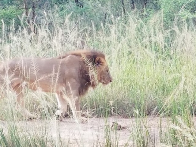 Someone noticed that the water buffalo (usually looking at us) were staring in a more distant area. That is when Mike saw something moving in the tall grass. Our guides identified it as a spotted leopard! The leopard was walking through the tall grass so we’d only get a periodic glimpse of his head, back and tail, but what treat! Later in the drive, we came across a lion the road! Again, a relatively rare find since lions don’t show themselves like the giraffes, antelopes and elephants. Later in the trip we came across a hyena just resting in an open area. After we watched him a bit, we were able to catch a glimpse of his mate and cub! So cool!