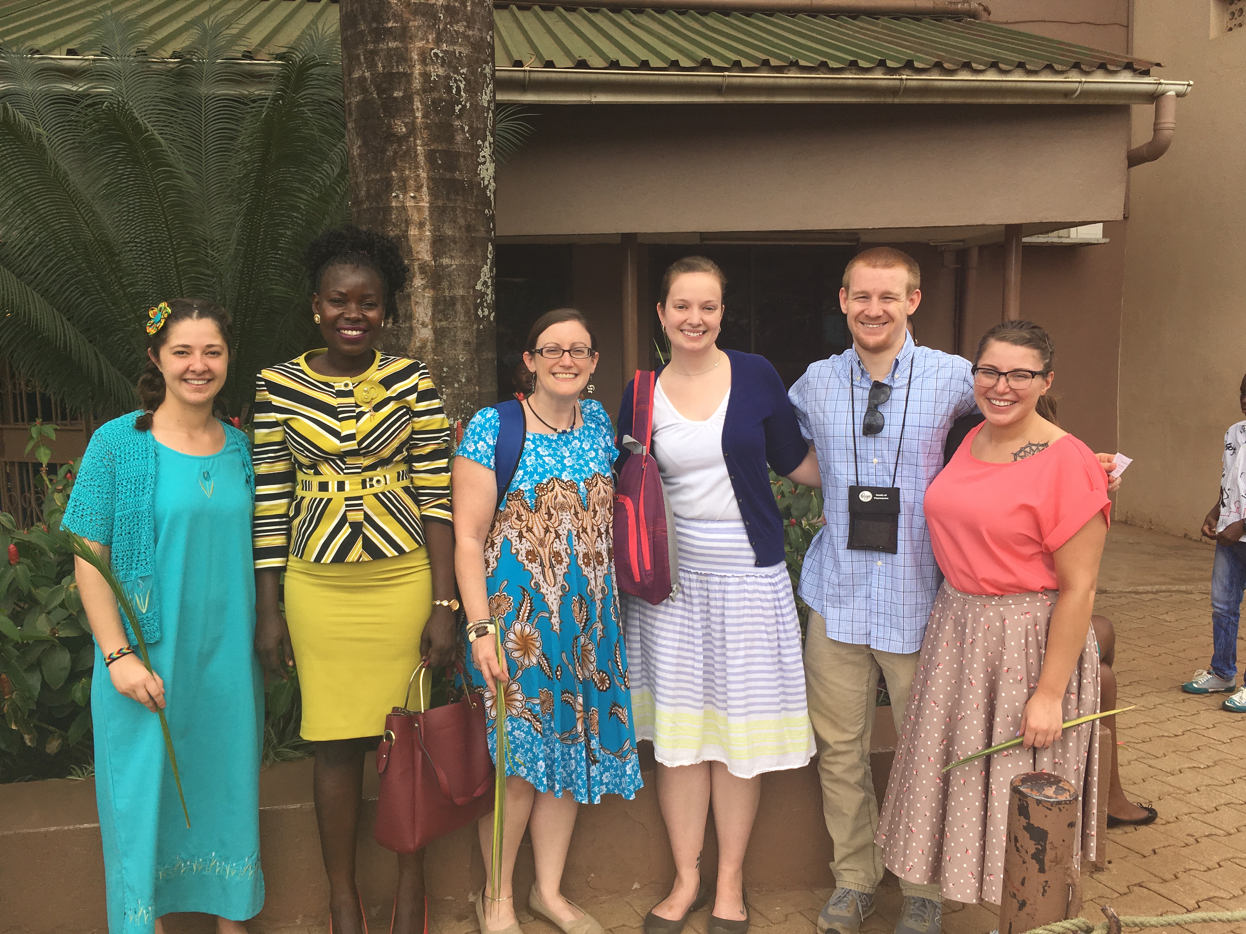 Today was Palm Sunday and the group was able to attend Watoto Church in Kampala. My good friend, Gonsha, who is one of the Ugandan pharmacists who came to the USA to study with me was able to pick us up and take us to her church. The services at Watoto are always joyful and uplifting with lots of music, singing, and dancing. Due to a slightly late arrival, the group had to sit in the tent outside rather than in the main church but there is a TV monitor and the whole service is easily seen and heard. Afterwards we enjoyed a light lunch and great conversation with Gonsha at the Good Samaritan Canteen which is located right here at the Mulago Guest House where we are staying.