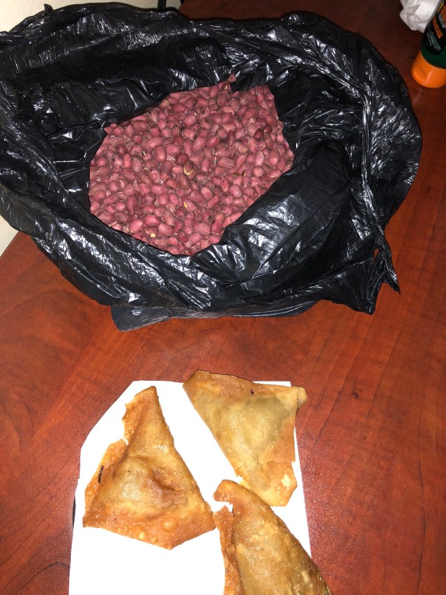 I didn’t take any photos today but let me leave you with one of the snack I had last week. This shows two of my favorite Ugandan foods: samosas and g-nuts. G-nuts are “ground nuts” which are roasted like peanuts but much better. They pack a nice crunch. Samosas are meat or veggies in a pastry. I’ve had them in the States but these are better- crispier.
