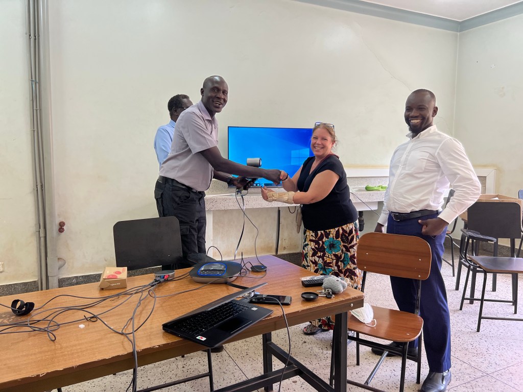 In the afternoon, I was able to formally hand over the Video Conferencing Equipment to the Department Head of Pharmacy, Mr. Robert Otto. Kalidi, Winnie, and I were able to get it up and working. I’m so excited about how this will advance our current research as well as enable other collaborations such as Binghamton Students learning with Makerere Pharmacy students.